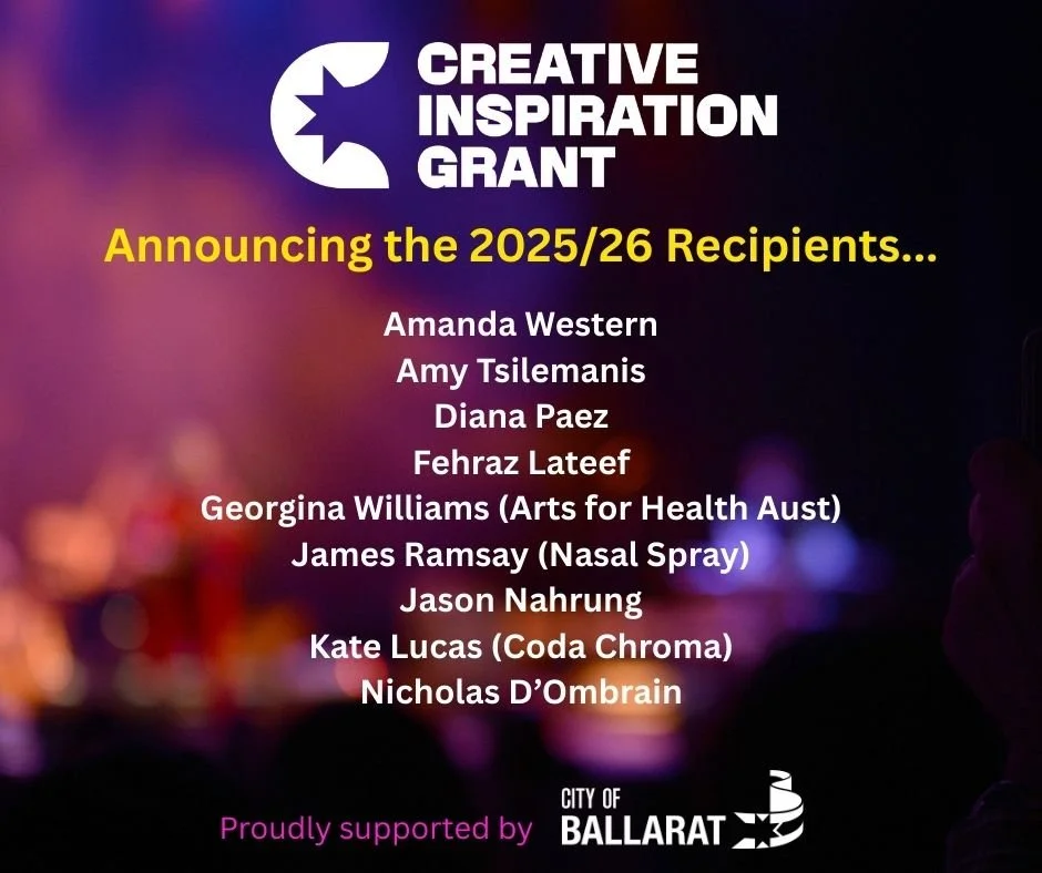 The Creative Inspiration Grant is designed to provide suitable financial support to artists, creatives, producers, performers, creative industries, makers and artisans who are living, working or studying in the City of Ballarat.